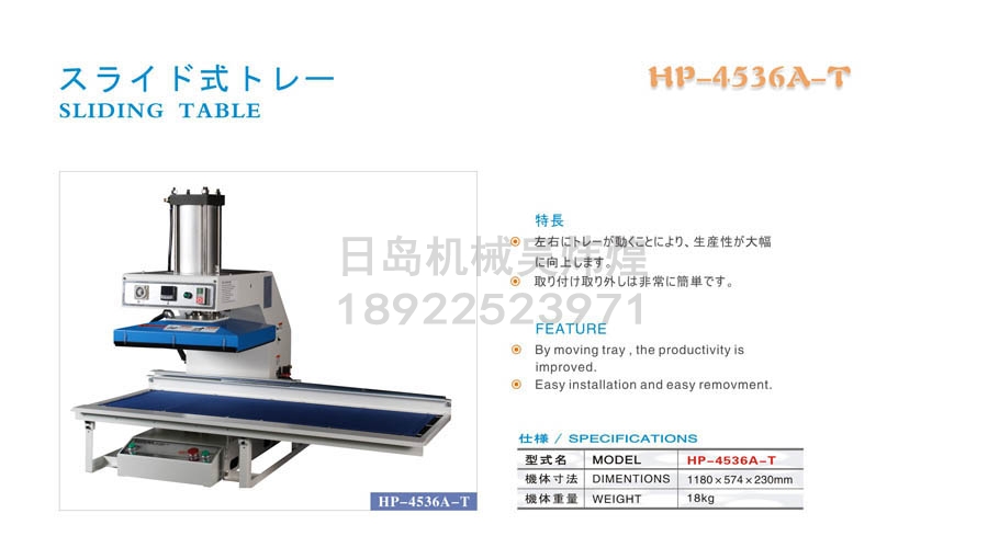 • 羽岛HASHIMA HP-4536A-T转印机滑动工作台